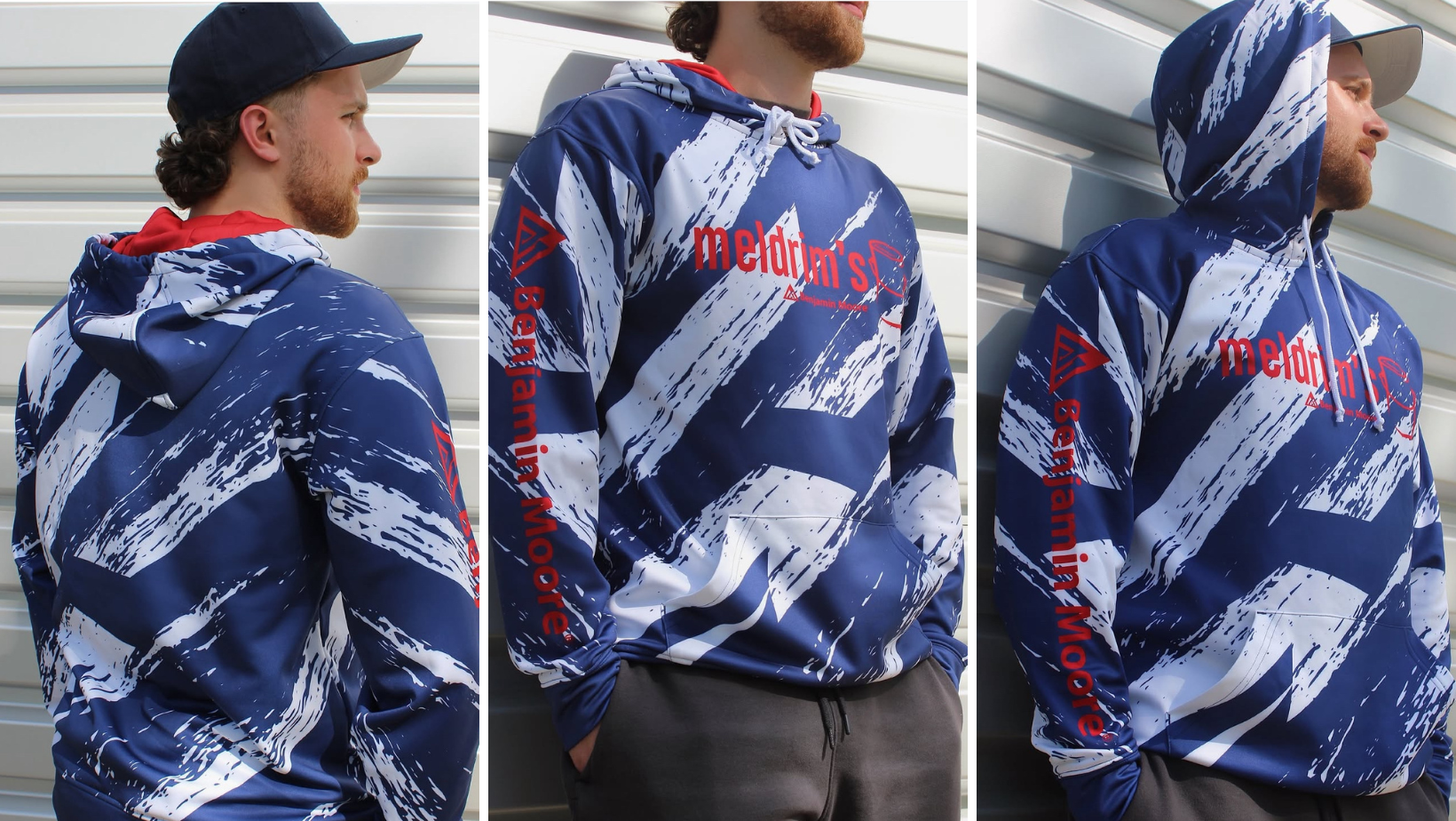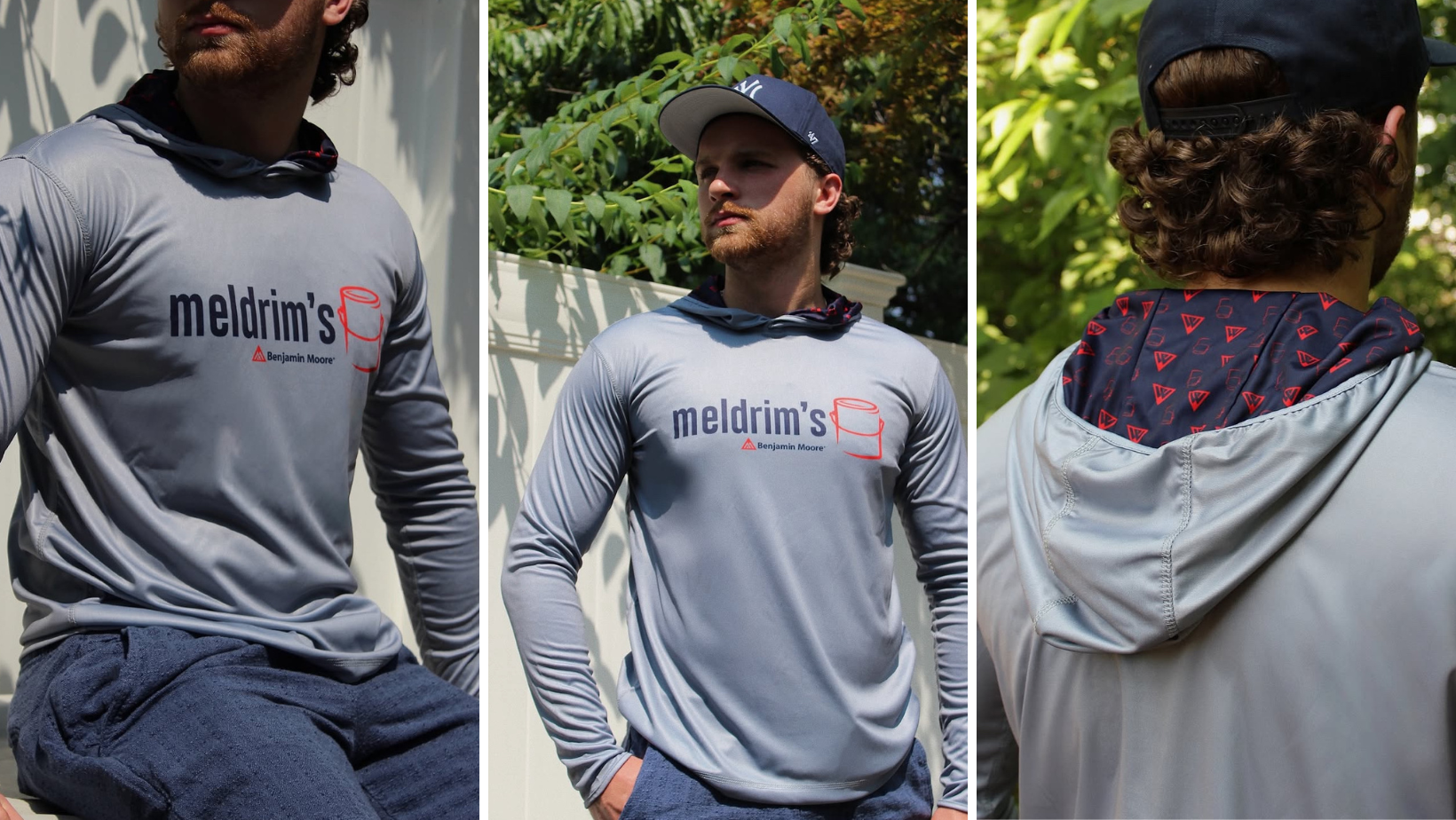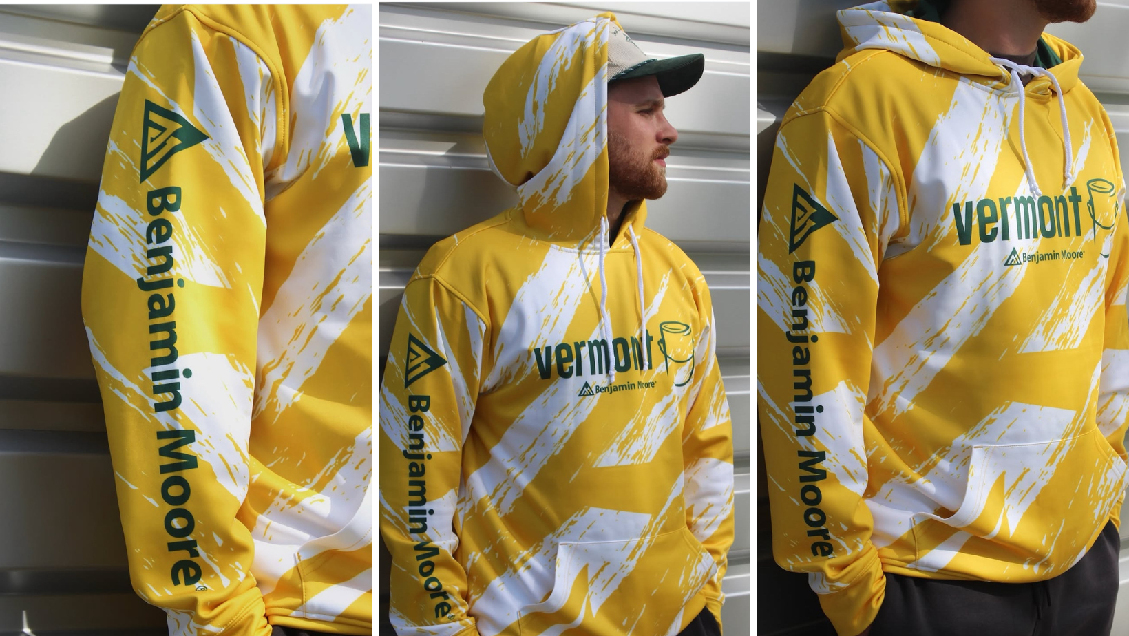 The project’s success led to another round of creative thinking — this time for Vermont Paint. Drawing inspiration from its proximity to the University of Vermont, The Dunstan Group designed fully custom sun hoodies in the school’s iconic green and gold colors. Inside the hoods, a step-and-repeat pattern featuring the brand’s logo and Benjamin Moore’s triangle added an extra level of detail.“