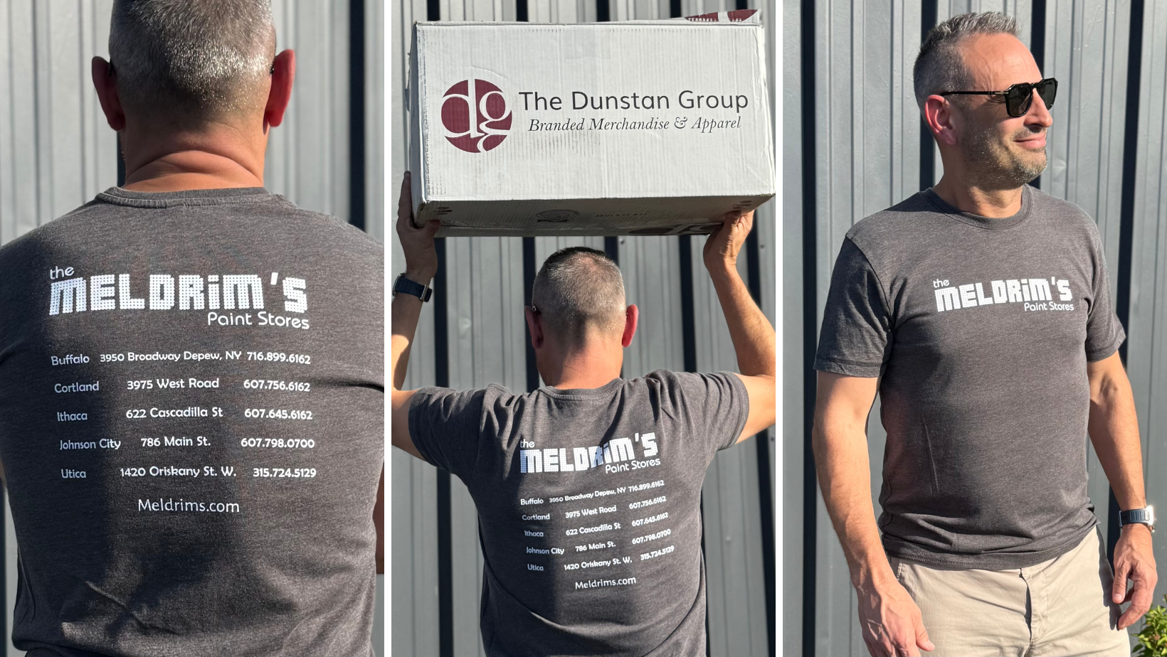 The result was a contractor T-shirt that looked more like a vintage concert tee than a work uniform — complete with a back design featuring every Meldrim’s location, styled like a tour schedule. “It looked like something you’d buy retail,” said Brian. “People couldn’t believe they were being given these.”